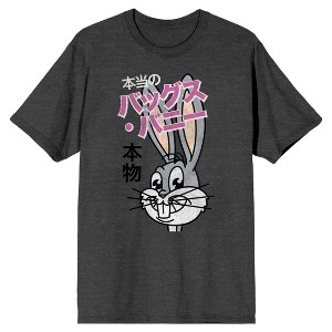 Looney Tunes Bugs Bunny And Kanji Letters Men's Charcoal Heather T-shirt - 1 of 2