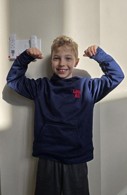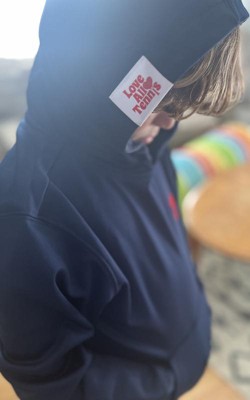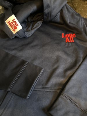 My daughter loves how silky soft this hoodie is. The fit is great and as easy for her to get in and off over her head. The “love all” logo on the chest stands out and is easy to read. I also like the logo tag on the hood, which adds to the design.