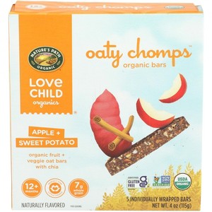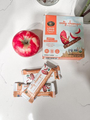 Love Child Organics Oaty Chomps Apple plus Sweet Potato Snack Bars are USDA Organic, Non-GMO, gluten-free, and kosher-certified, crafted for kids 12 months and up. Naturally sweetened with dried apple and sweet potato, they also include chia seeds for added fiber and healthy fats. With no added sugars and clean ingredients, these soft, grab-and-go bars support wholesome, nutritious snacking anytime.