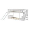 Experience the ultimate blend of functionality and joy with the Max & Lily Twin Over Twin Low Bunk Bed featuring an easy slide, stairs, and farmhouse curtain. Designed to create a fun and space-saving environment, this bunk bed guarantees an exciting haven for your children.