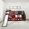 Low Bunk With Stairs, Easy Slide & Firetruck Curtain
