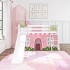 Twin Low Loft With Easy Slide & Light Pink & White Farmhouse Curtain
