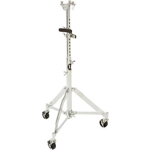 The rugged LP290B double conga stand adjusts in height from a drum head height of 37" - 48". The stand uses an exclusive pin-lock which prevents the vertical support tube from slipping (even under pressure from the most heavy-handed conga players). Made of heavy-gauge, chromeplated steel, the dual conga stand is equipped with LP's exclusive custom-made casters (with brakes). The stand's mounting brackets prevent congas from twisting during performance and the adjustable drum separators permit angle adjustments. Mounting screws at the top of the conga stand mean easier wing nut tightening.