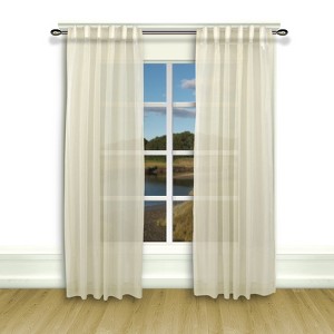 These elegant sheers are designed with (7) 4" L back tabs per panel that create soft pleats across the top of each panel when the curtains are open. The light-filtering fabric offers a level of privacy—plus, it hasa soft drape and generous width for a luxuriously full look. Curtains are sold in pairs and includes a pull wand for easy opening and closing. This pair are specially designed to open and close with ease, having a unique thermal bonded reinforced header. These pairs measure 104" W (52" W each panel) and offered in varied lengths: 63", 84" and 96". An attachable wand can be positioned on either side for easy opening and closing. Available in both 6 neutral colors: white, ivory, linen, butterscotch, olive and custard.