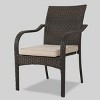 Seating Piece 1: Patio Dining Arm Chair: 35 Inches (H) x 24.5 Inches (W) x 27.25 Inches (D), 19.75 Inches (seat back height), 19.75 Inches (seat depth)