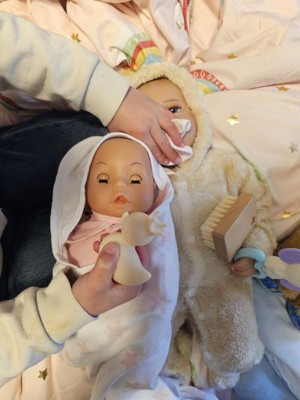 [This review was collected as part of a promotion.] I really appreciated the packaging used thread instead of plastic! My toddler twins love wrapping their dolls up in the little soft blanket and playing with the duck and brush.