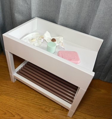 [This review was collected as part of a promotion.] It’s a cute and sturdy changing table for a babydoll. I thought it was going to be wooden or a different material but the plastic has held up with toddlers. You can keep all the added toys on the bottom or you can take it apart easily for storage!