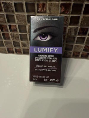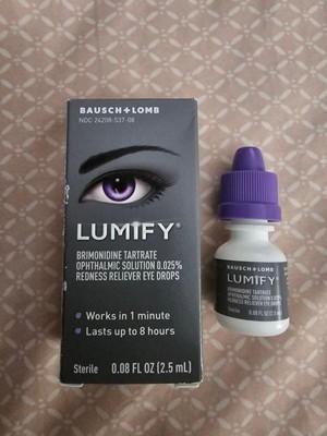 - LUMIFY Eye Drops: LUMIFY redness reliever eye drops work in just 1 minute to help red eyes look whiter and brighter, lasting up to 8 hours. They make your eyes feel refreshed and reveal your eyes' natural radiance. From the eye care experts at Bausch + Lomb.