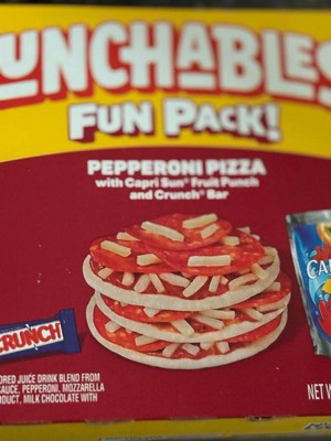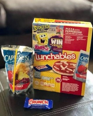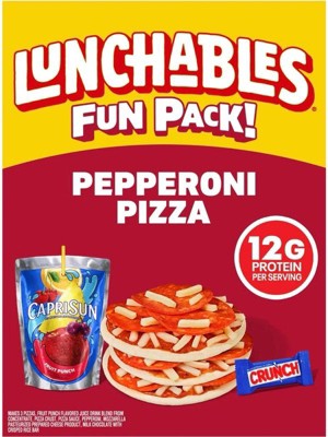 - One 4.7 oz & 6 fl oz package of Lunchables Pepperoni Pizza with Capri Sun Fruit Punch and Crunch Bar Fun Pack