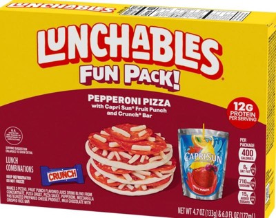 The Lunchables Pepperoni Pizza kit offers a nostalgic and interactive meal experience for kids, featuring mini pizzas that are fun to assemble. Guests appreciate the inclusion of a Capri Sun and a Nestle Crunch bar, making it a complete lunch option. While the pizza crust and pepperoni received mixed reviews, the overall convenience and packaging are praised. This kit is ideal for school lunches or on-the-go snacks, providing a tasty and engaging meal for children.