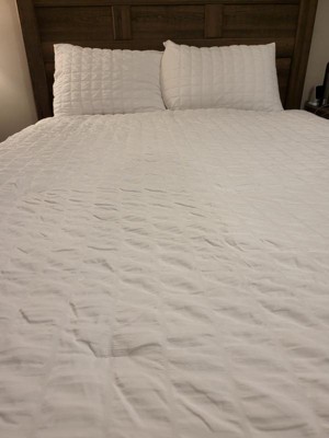 [This review was collected as part of a promotion.] Our previous comforter was a few years old, and we needed a revamp to our master bed. This Lush comforter reminds us of a fancy hotel comforter. We chose the white crinkle texture. We were a little intimidated by having an all white bed, but it really gives our bedroom a comfortable aura. The comforter itself is incredibly comfortable.