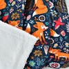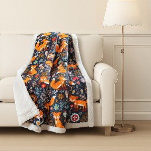 Add this cute and fun Pixie Fox Reversible Faux Shearling Throw Blanket to your child's space. The colorful print shows foxes frolicking in a flower field, almost like they are truly in motion. The white faux shearling reverse is warm & soft to the touch. This whimsical throw blanket adds style and function to your child's bedroom or playroom. It makes a perfect layering piece for your toddler's bed or chair and even as their favorite warm blanket to cozy up with the family on the couch. Its wonderfully luxurious to wrap yourself in, like your favorite towel straight out of the dryer. It will make you feel warm all over. Use this throw in your kids' room, family room or play room. This fox blanket measures 50 inches wide by 60 inches long and is crafted from a soft microfiber front and faux shearling back with a polyfill. It's the perfect size for two adults to snuggle in together or as the main blanket on your child's bed. This versatile quilted faux shearling throw blanket is a must-have for all your cozy moments. Great as a gift or the perfect pet blanket! Ideal for a kitten, cat, puppy, dog, or any fun pet, this comfy blanket also fits great in a pet crate! Designed for effortless maintenance, it's easy to care for this throw blanket. Simply machine wash cold on a gentle cycle and tumble dry low. If needed use a non-chlorine bleach for cleaning or a steamer to release wrinkles. Do not iron. Please refer to label for full care instructions.