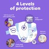 FOUR LEVELS OF PROTECTION: Triple Leakguards, wetness indicator, secure and stretchy sides, comfy leak barrier cuffs