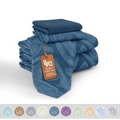 Lux Decor Twin Sheet Set 4 Pcs Brushed Microfiber Bed Sheets Luxurious Sheets for Twin Size Bed - Blue