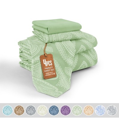 Lux Decor Twin Sheet Set 4 Pcs Brushed Microfiber Bed Sheets Luxurious Sheets for Twin Size Bed - Green
