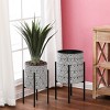 LuxenHome Set of 2 Black and White Metal Cachepot Planters with Black Metal Stands Multicolored