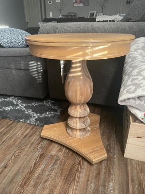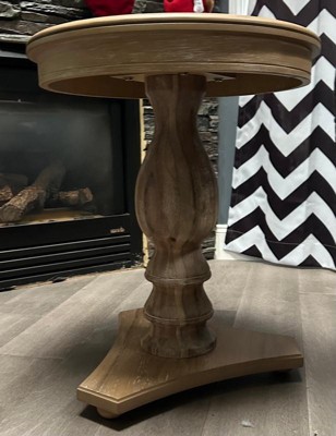 Lyla Traditional Side Table Hazelnut Brown - Powell: Elegant Pedestal, Beveled Edge, Rubberwood