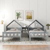Lyngins Double Twin Size Platform Bed Frame with House-Shaped Headboard & Built-In Nightstand, Solid Wood Toddler Bed, Kids Bed Frame