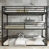 Lyngins Metal Triple Bunk Bed with Full-Length Guardrails, Noise-Reducing Space-Saving Bed Frame, Minimalist Floor Bed for Shared Bedrooms