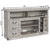 This rustic farmhouse TV stand fits TVs up to 65" and offers a combination of open shelving and enclosed cabinets for organized storage.