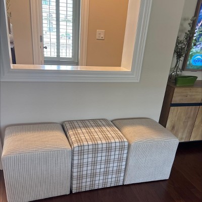 These ottomans are perfection. You can use them anywhere, entryway , bedroom or living room. I purchased 2 of the light brown windowpane plaid and they are exactly as pictured. Just the perfect amount of neutral color without shouting at you. Very well made and elegant looking. Great design Studio McGee!