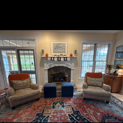 Gorgeous deep blue abrash color. Soft and cozy, yet firm to sit on. A perfect addition to a colorful rug with blue tones.