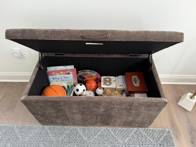 This storage bench is gorgeous! Exactly what I needed for my son’s play area. It’s lightweight and easy to move but adds extra seating in our basement. It looks so nice and allows for there to be toys when need and tucked away when not in use. If you are looking to have a common area store toys but still look nice this is perfect!
