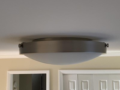 [This review was collected as part of a promotion.] My husband installed this beautiful light in our laundry room I like the old bronze color its simple and elegant flushed to the ceiling but really stand out on this fixture is the size it’s big and has three lights so it’s very bright and provides good lighting