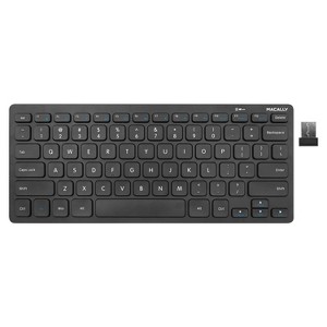 The Macally RFCOMPACTKEY is a 2. 4GHz compact wireless RF keyboard with a layout specially designed for PC. This keyboard is ultra slim and compact to save space on the desk and easily store inside a keyboard drawer. The additional shortcut keys further increase efficiency and productivity. The Macally RFCOMPACTKEY is very easy to use. Simply plug the RF receiver dongle into the USB port of your computer and you are ready to go! Also, no software is required! Thin, compact, and versatile, the Macally RFCOMPACTKEY is the perfect companion for your PC!