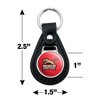 - QUALITY MATERIAL: Our durable round keychain is crafted from leather with a glossy resin-topped emblem featured design shown on one side. Approximately 1.5" (3.8cm) x 2.5" (6.4cm) in overall size, emblem is 1" (2.5cm)..