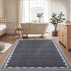 - 【Timeless Unique Scalloped Design】Elevate your home decor with this exquisite, washable, and foldable rug that seamlessly combines functionality with elegance. Its minimalistic, neutral cream hue serves as a versatile canvas, while the scalloped edge design adds a touch of timeless charm and modern sophistication. Whether placed in a living room, bedroom, or entryway, this rug effortlessly enhances any space with its unique aesthetic. Crafted using advanced printing techniques, each rug features slight variations from the product photos, ensuring that every piece is one-of-a-kind and truly special.