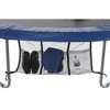 Get this Upper Bounce Universal Three Pouch Trampoline Shoe Bag to eliminate all the clutter on and around your trampoline. It's the perfect solution for you to keep all your stuff together and it attaches easily right to your trampoline. Made of heavy duty black mesh it will keep your stuff protected and out of the way while you jump. This is one smart accessory to have around trampolines! Bag measures approx. 48" X 27" and attach to your trampoline with straps. Features 3 16" X 13" pockets to place your shoes, jewelry, games etc.