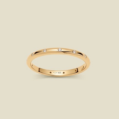 A dainty twist on our bestselling eternity style—this gold band is dotted with flush-set CZs all the way around, giving you a full sparkle moment. Stack it, style it, or let it shine solo—it’s a staple, all day, every day, effortlessly elevating your look with timeless, radiant elegance.