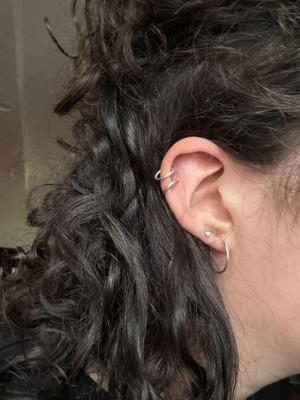 [This review was collected as part of a promotion.] I purchased two pairs of hoops a year and a half ago. I put the 12mm pair in my first lobe piercings and one of the minis in a helix. The pros: They’re comfortable and light. I barely feel them on a day-to-day basis while sleeping, lifting, or working. They also look exactly how I hoped they would. They’re the perfect size and have no discoloration after almost constant wear. The cons: They’re very difficult to put in and take out, even with the instructions and video. I very rarely need to change them but I dread doing so, and my (healed) piercings were always so irritated afterward. You also risk the earrings getting slightly distorted depending on how far you need to twist them to put them in. PSA: I do NOT recommend these earrings in a helix piercing. If the narrower section near the clasp got twisted slightly forward or back it really irritated the piercing. It was also 5x more difficult to put in the helix ring than the lobes. I never changed it, and when the earring accidentally came unhooked after over a year of wear, I had to cut it off to take the earring out because the clasp was so difficult. Verdict: I like them well enough for my lobe piercings to not retire them early, but I’m definitely getting some high quality clicker hoops instead when it’s time for a new pair. I will never use them in a helix or in a piercing that I plan to change earrings in occasionally.