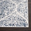 The rug's pattern, visible in the image, displays a gorgeous marriage of cream and royal blue, with a design that hints at a blend of traditional and contemporary aesthetics. The intricate detailing within each pattern segment inspires a sense of grandeur and luxury, making it a versatile addition to any room.