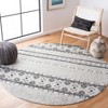 Discover the charm of our round area rug, where Bohemian style meets modern living. Measuring 6 feet 7 inches by 6 feet 7 inches, this rug makes a striking addition to any space. Crafted with a focus on design, its charcoal and grey tones blend seamlessly with your decor. Made in Turkey using a refined power-loomed technique, this rug combines aesthetics with functionality.