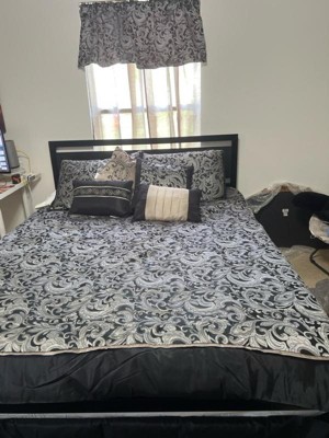 A: Hello Cindi, thank you for reaching out. The Madison Park 24pc Isabella Room in a Bag provides a breathtaking total makeover for your bedroom decor. The dimension of the Queen comforter is 90 Inches in length and 90 Inches in width. I hope this helps and have a great one.