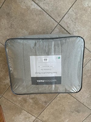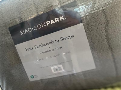 [This review was collected as part of a promotion.] I am in love with this Madison Park faux feather soft to Sherpa comforter set. Immediately washed nicely and stayed soft. It has a generous fit for a full/Queen and covers my king size bed pretty well. It is so luxuriously soft and guarantee that this will absolutely keep us nice and toasty this winter.