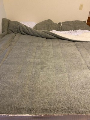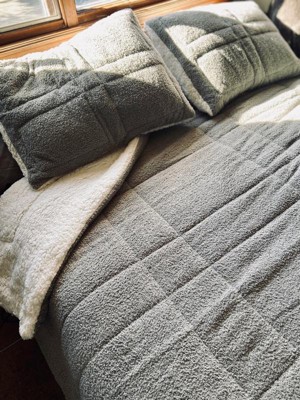 With a buttery soft face and a cozy faux shearling reverse, this Madison Park comforter set will make you want to stay in bed all day. The solid neutral grey tone and classic windowpane quilting make this bed match your decor easily. Its machine washable nature makes maintenance easy, and the OEKO-TEX certified material is safe on skin for durable, long lasting comfort.