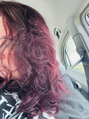 [This review was collected as part of a promotion.] [I received this product in exchange for my honest review] my hair is dark black. The product on my hair had a plum halo effect seen in the sunlight. Probably would have been more effective if I lightened my hair first.