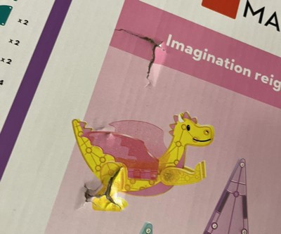 - What’s Included: 48 magnetic pieces, including 1 drawbridge, 1 Dragon Figure, 1 Royalty Figure, 2 Spiral Staircases, 2 Balconies, 4 Windows, 2 Equilateral Triangles (glitter), 2 Quarter Circles, 5 Isosceles Triangles, 20 Squares (10 Glitter, 10 Standard), 2 microMAGS Equilateral Triangles, 4 microMAGS Squares, and 2 microMAGS Isosceles Triangles.