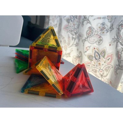 [This review was collected as part of a promotion.] I love games and toys that inspire imagination and hands on play time. Magna-Tiles offers hours of endless fun letting your child's imagination create towers and structures you don't usually see with some of the standard building sets. The vibrant colors as well as the different shapes that snap together was perfect play time for my nephews when they came to visit me. Even my younger toddler niece wanted to get in on the action, with constant supervision as some pieces could be a choking hazard for younger children. As I sat down with my niece to play ,she figured out very easily how to snap the pieces together and I was in awe at how quickly her imagination took over and she made a double Decker house that showed how important play time and creation is to children. I definitely recommend this product to anyone that wants to inspire the creative side in their children.
