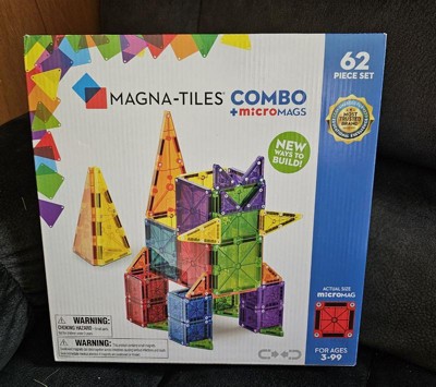 [This review was collected as part of a promotion.] The new magna-tiles and micro-mags combo set comes with 62 pieces and is incredibly fun for everyone! Magna-tiles and micro-mags pair perfect.
