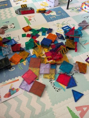 [This review was collected as part of a promotion.] My 3 year old is obsessed with these magna-tiles! I bought her some when she was younger and she wasn’t quite into them yet, but since getting these she plays endlessly. I love how safe and durable they are, and they’re easy to clean up too!