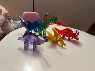 [This review was collected as part of a promotion.] my great grandson loves dinosaurs… only problem was that he would build magna tile towers, etc & the bigger dinosaurs tended to be too heavy to stay connected to towers (they slid/fell off). Nevertheless was a super good buy for his active mind & his collection of dinosaurs.