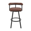 Elevate your space with the flair of our Magnolia swivel chair, bar stool or counter height stool in faux leather and metal from Armen Living. Featuring a minimal and streamlined barrel back, this mid-century modern counter stool exudes a sleek and inviting look. Plush cushioning at the back and the padded seat provide a comfortable seating experience, while the open back design allows for breathability. Elevated by a chic metal frame, our stylish counter stool or barstool makes a powerful design statement. Upholstered in faux leather, it ensures a comfortable experience at high dining areas, kitchen counters, or worktables. Faux leather's durability ensures it won't easily crack, stain, fade, or be affected by UV exposure. Counter or bar-height stools with a swivel mechanism offer added convenience for daily use and entertaining. The full 360-degree swivel chair function provides maximum mobility, and the smooth glide swivel allows you to change directions effortlessly, making it your new favorite seat at home. The Magnolia faux leather and metal kitchen barstool is available in a black finish with brown or gray faux leather, a brushed stainless-steel finish with your choice of black, light gray, or white faux leather, or a java brown finish with chocolate faux leather upholstery. This barstool is available in both 26-inch seat height and 30-inch seat height options.