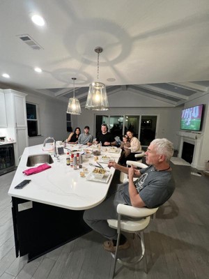 UPGRADED FABRIC - These stools are upholstered in a luxurious faux leather that is soft to the touch and comfortable to sit on for hours on end. Make clean up a breeze and easily wipe away any spills or messes in seconds allowing you more time to enjoy and less time cleaning.