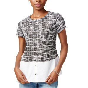 maison Jules Womens Printed Contrast Pullover Blouse