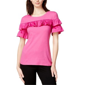 PURE COTTON: This maison Jules Womens Ruffled Basic T-Shirt is made of 100% Cotton, providing a medium weight and classic fit for casual wear in all seasons.