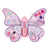 Love this cute set! Folds up and keeps everything clean & in place. Colors are light and even when they put on too much, it's really just shimmery and glossy.